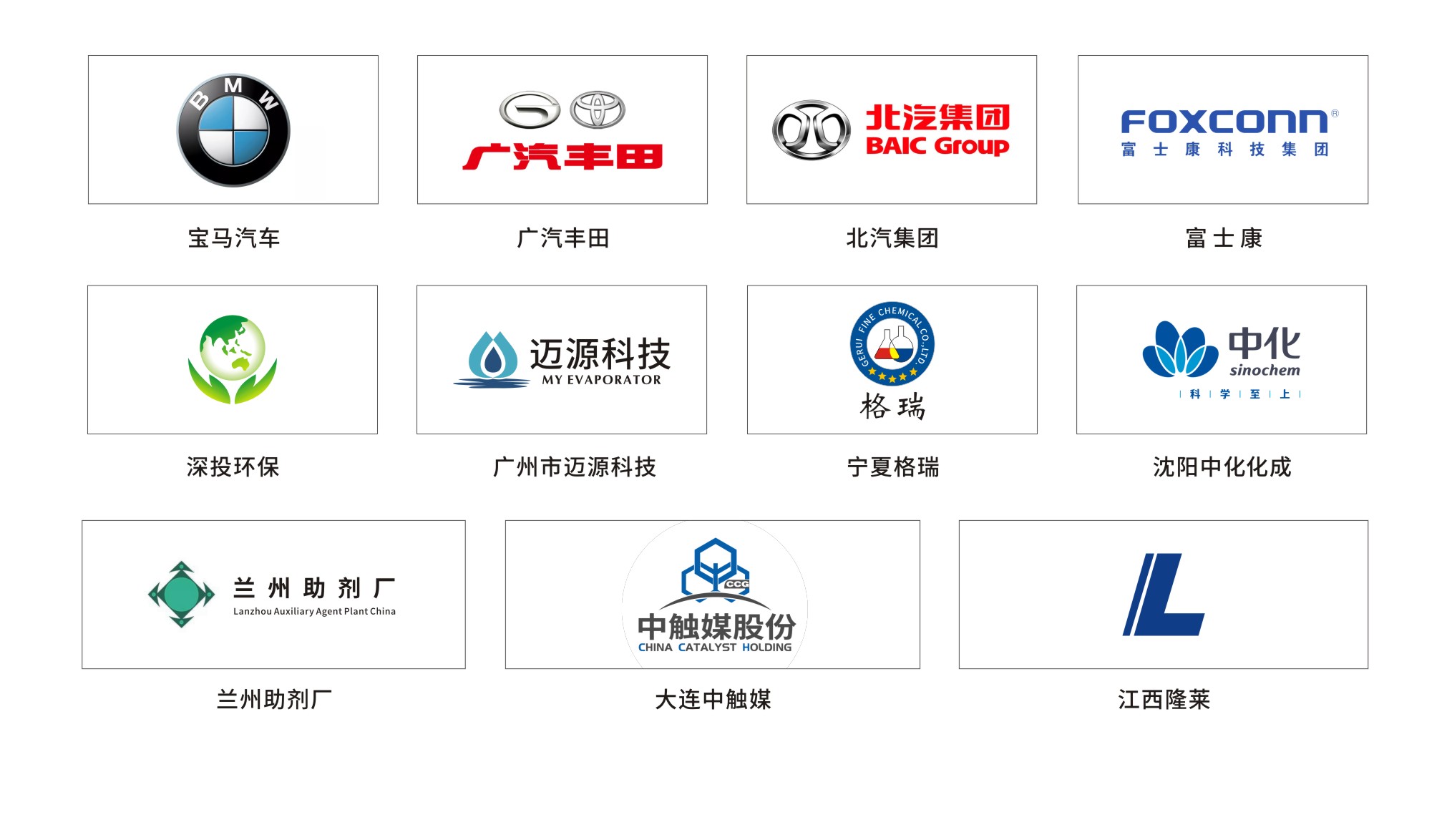 目前,公司已在成都、大連、蘇州、內蒙古等地設立了辦事機構,服務的客戶包括深投環(huán)保、寶馬汽車、富士康、廈門嘉戎、寧夏格瑞,蘭州助劑廠、江西隆萊、大連中觸媒等行業內領頭企業,在國內落地項目有170多家。
